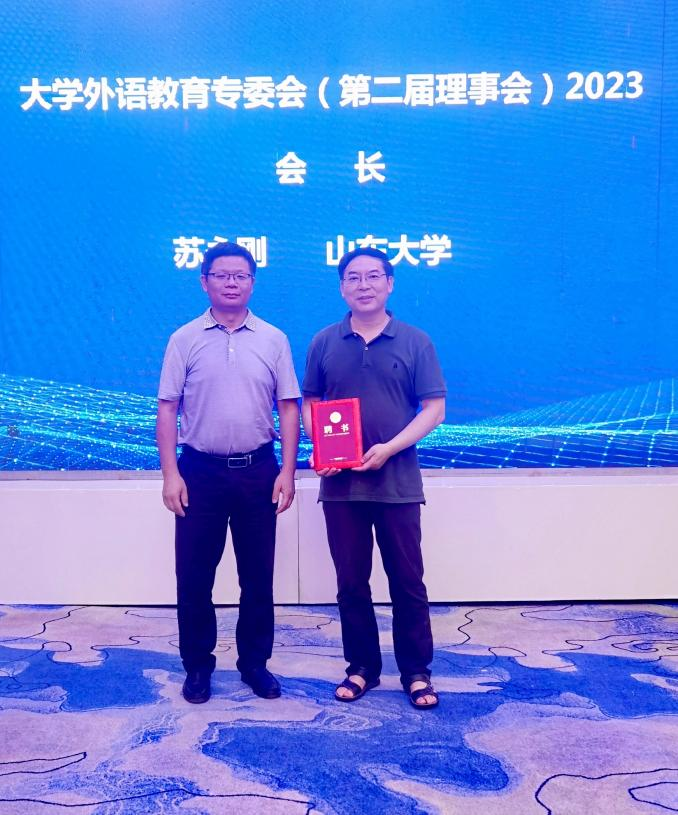 山东省国外语言学会会长马文教授给苏永刚会长颁发聘书