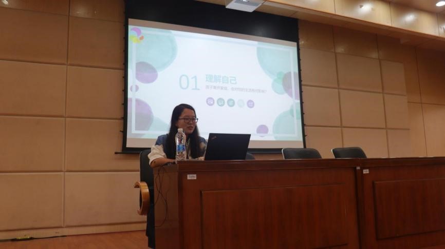 孙浩令则就大学生心理健康情况进行发言。她从“上大学了就轻松了?”这一常见问题入手,分别就怎样理解自己、如何理解孩子、家校合作、大学生活的新挑战四个方面进行详细讲解。