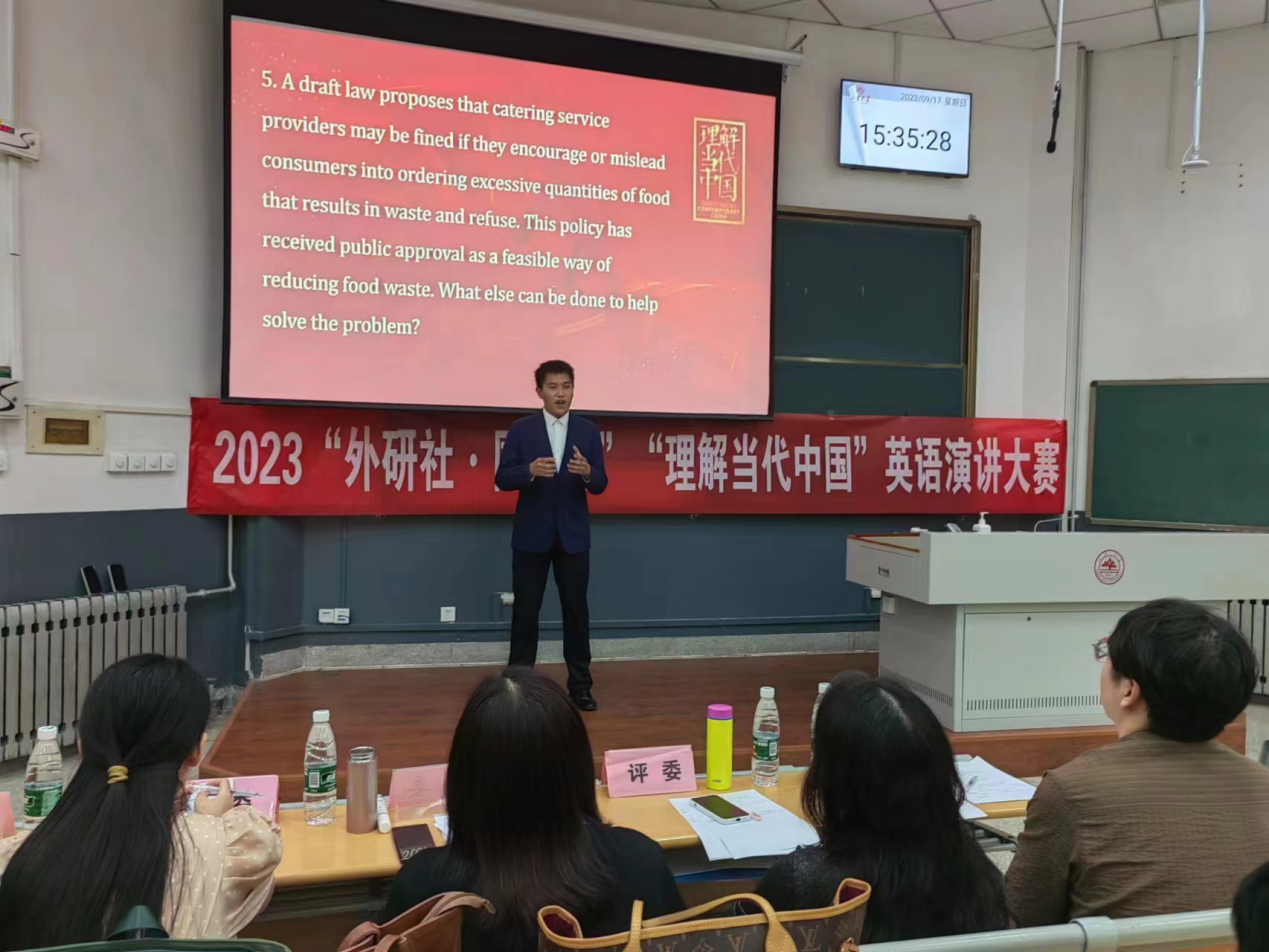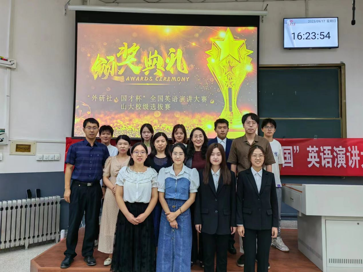 2023年9月17日下午,“外研社·国才杯”“理解当代中国”全国大学生外语能力大赛英语演讲比赛之威廉希尔中文官方网站校选赛在洪家楼校区如期举行。威廉希尔中文官方网站外语应用与全球胜任力提升创新平台的高云老师、闫秋燕老师、林殿芳老师、姜仁风老师及特邀威廉希尔中文官方网站访问学者商培培老师出席了此次比赛,并担任大赛评委。