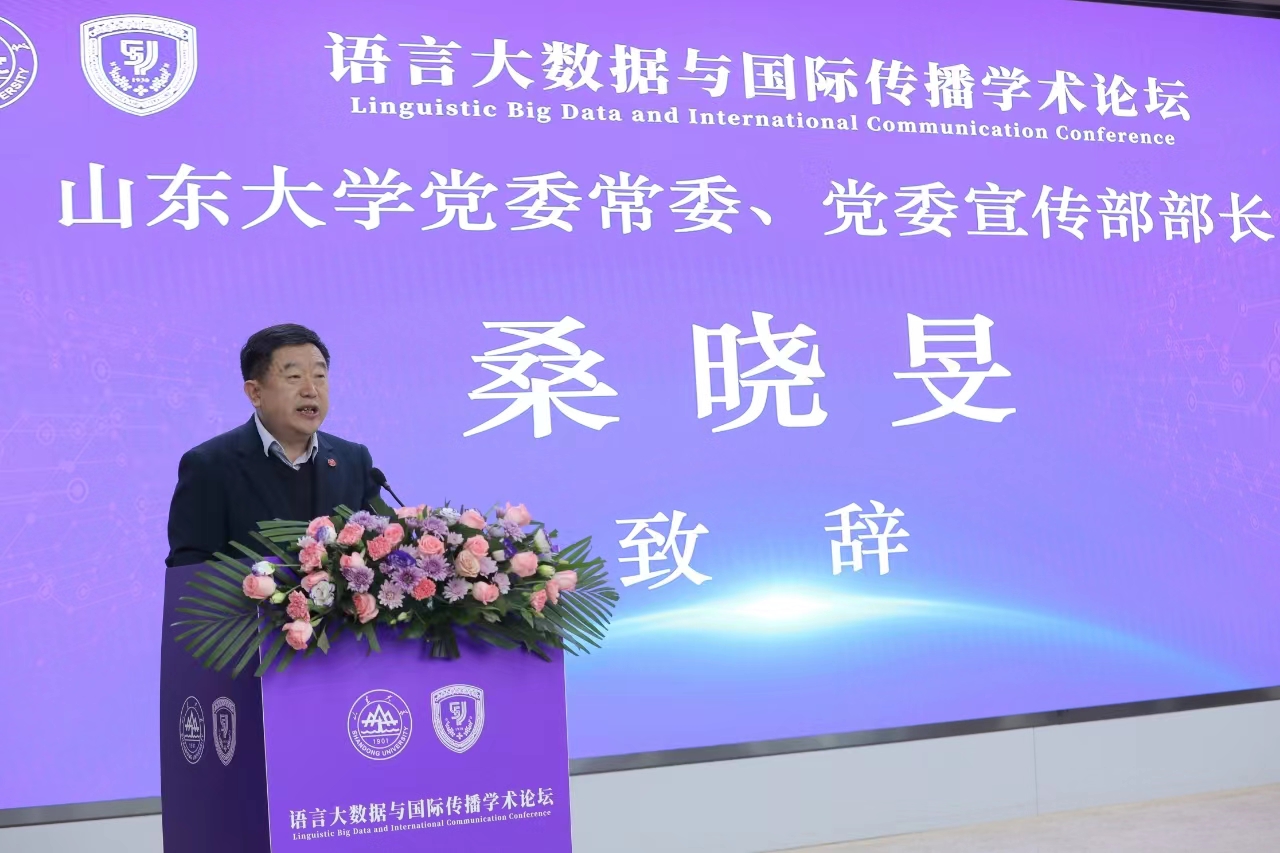 桑晓旻部长在致辞中向论坛的顺利召开致以诚挚的祝贺,向莅临论坛的专家和嘉宾表达了热烈的欢迎。他表示,威廉希尔中文官方网站始终坚守“为天下储人才,为国家图富强”的办学宗旨,在服务支撑强国建设、民族复兴和人类文明进步中彰显了山大担当、展现山大作为。如何以大数据思路和现代科学手段赋予语言全新的活力与动能,通过深化语言大数据研究提升国际传播效能,已然成为广大外语研究者密切关注和急需解决的重要课题。本次论坛立足全球视野,对标时代所需,深入探究语言大数据与国际传播研究的理论发展、方法创新、国际前沿、本土发展和学科融合等的新模式、新方法,具有重要的学术价值与现实意义。
