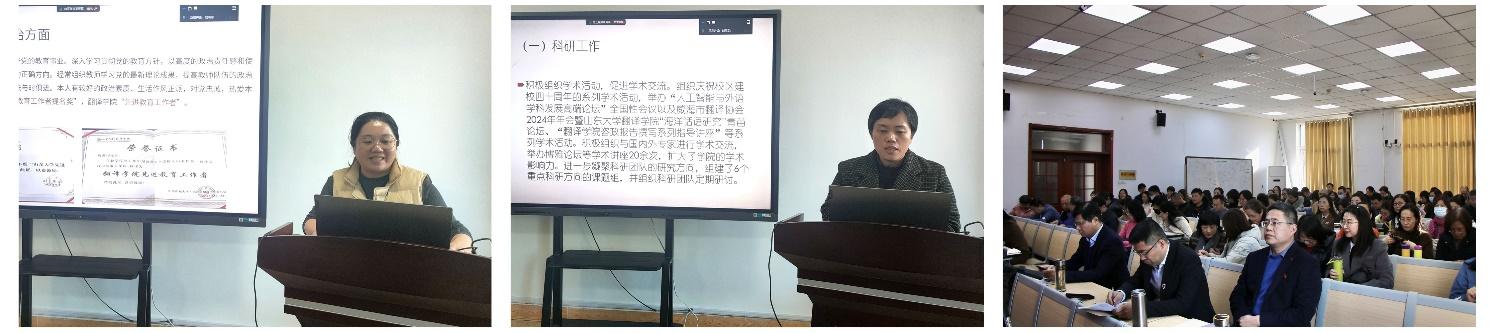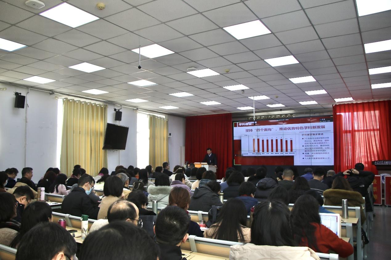 威廉希尔中文官方网站、翻译学院领导班子成员、党委委员、副高职称以上老师、系主任、教工党支部书记、科级以上干部等教职工参加会议。