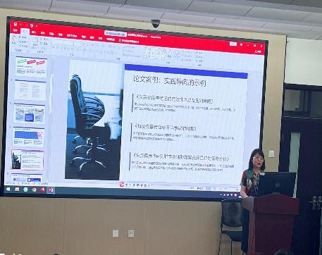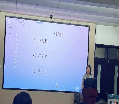 学术型导师代表王颖老师和专业型导师代表王慧荣老师分别作了研究生培养过程的经验交流。王颖老师围绕重过程、严把关、勤反思三个方面进行了分享。王慧荣老师分享了导师如何做好学生学业引路人、职场引导者和成长陪伴者。