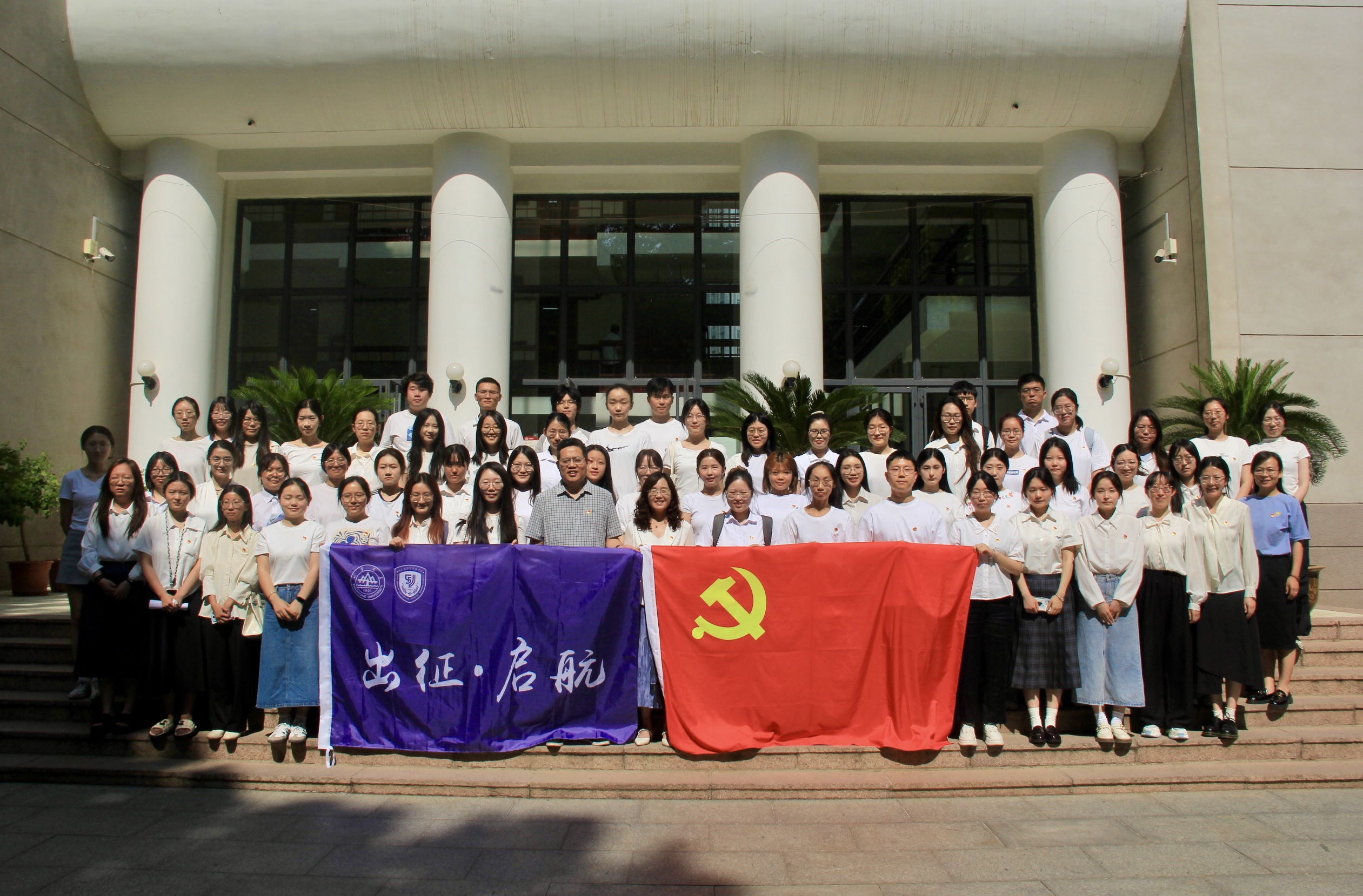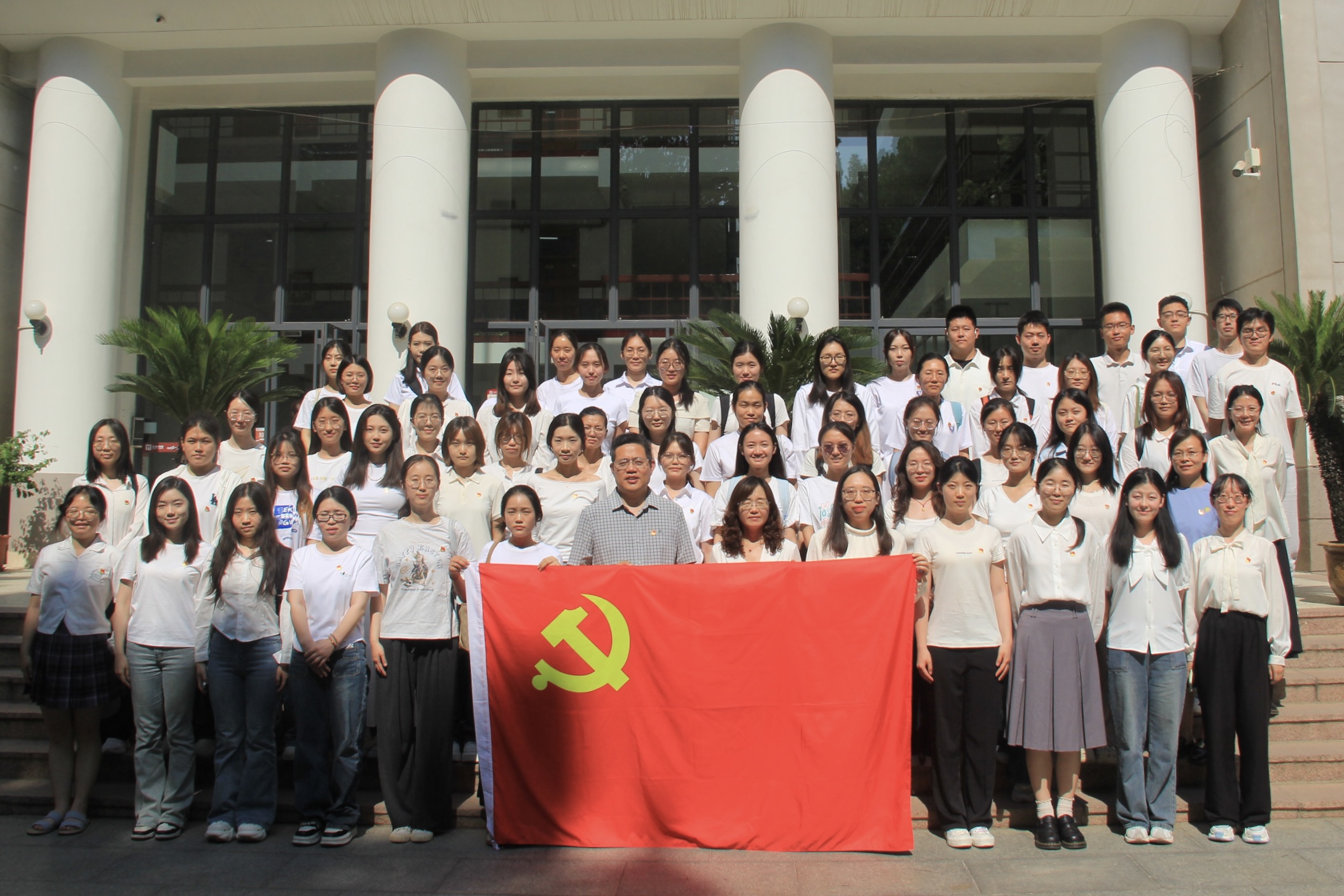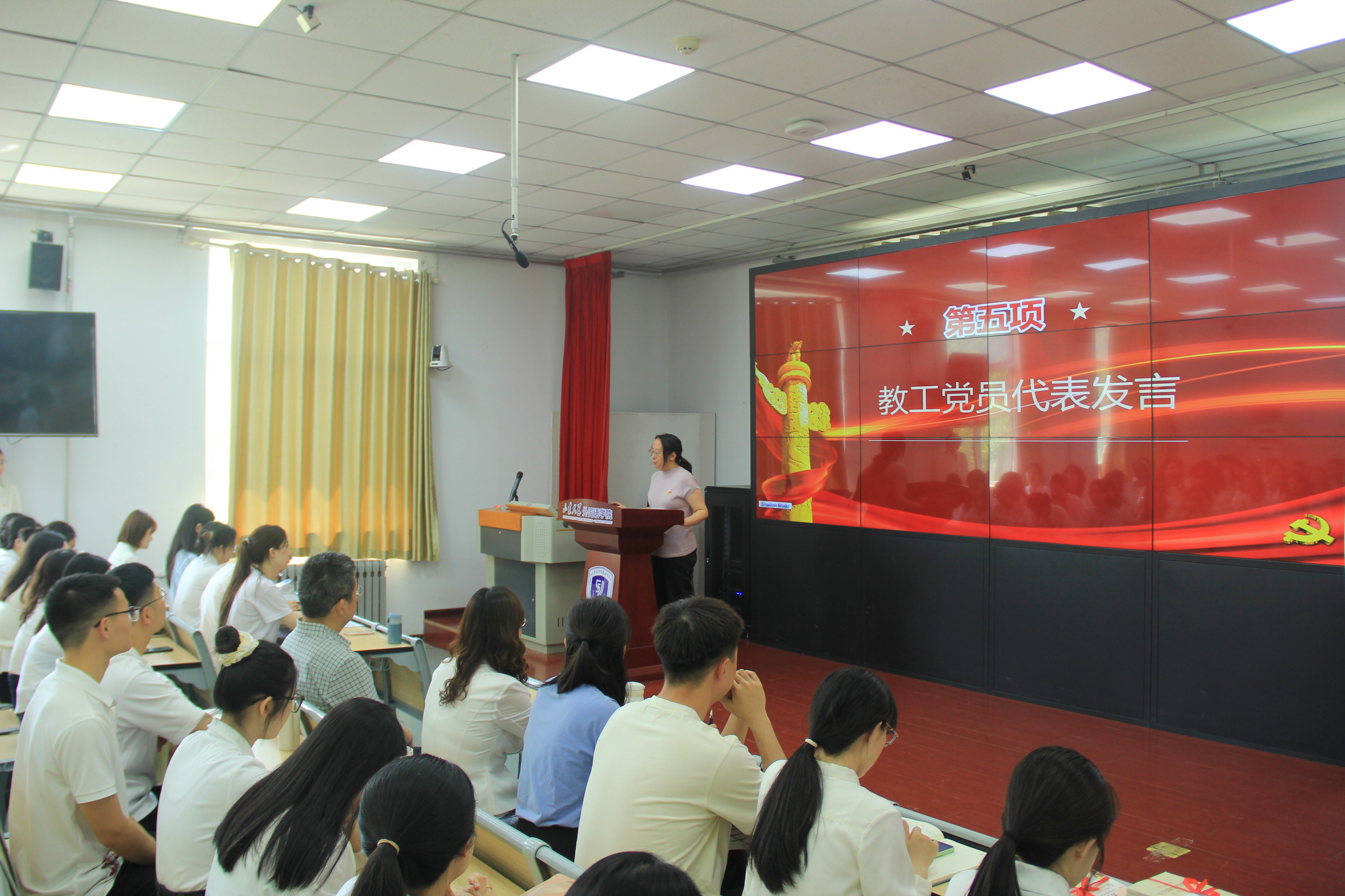 蒋颖教授作为教职工党员代表发言。她向新入党的预备党员致以祝贺,深情回顾党员学子们的成长历程;对毕业生党员提出殷切期望,希望大家在新征程中永葆先锋本色,不忘初心、牢记使命。