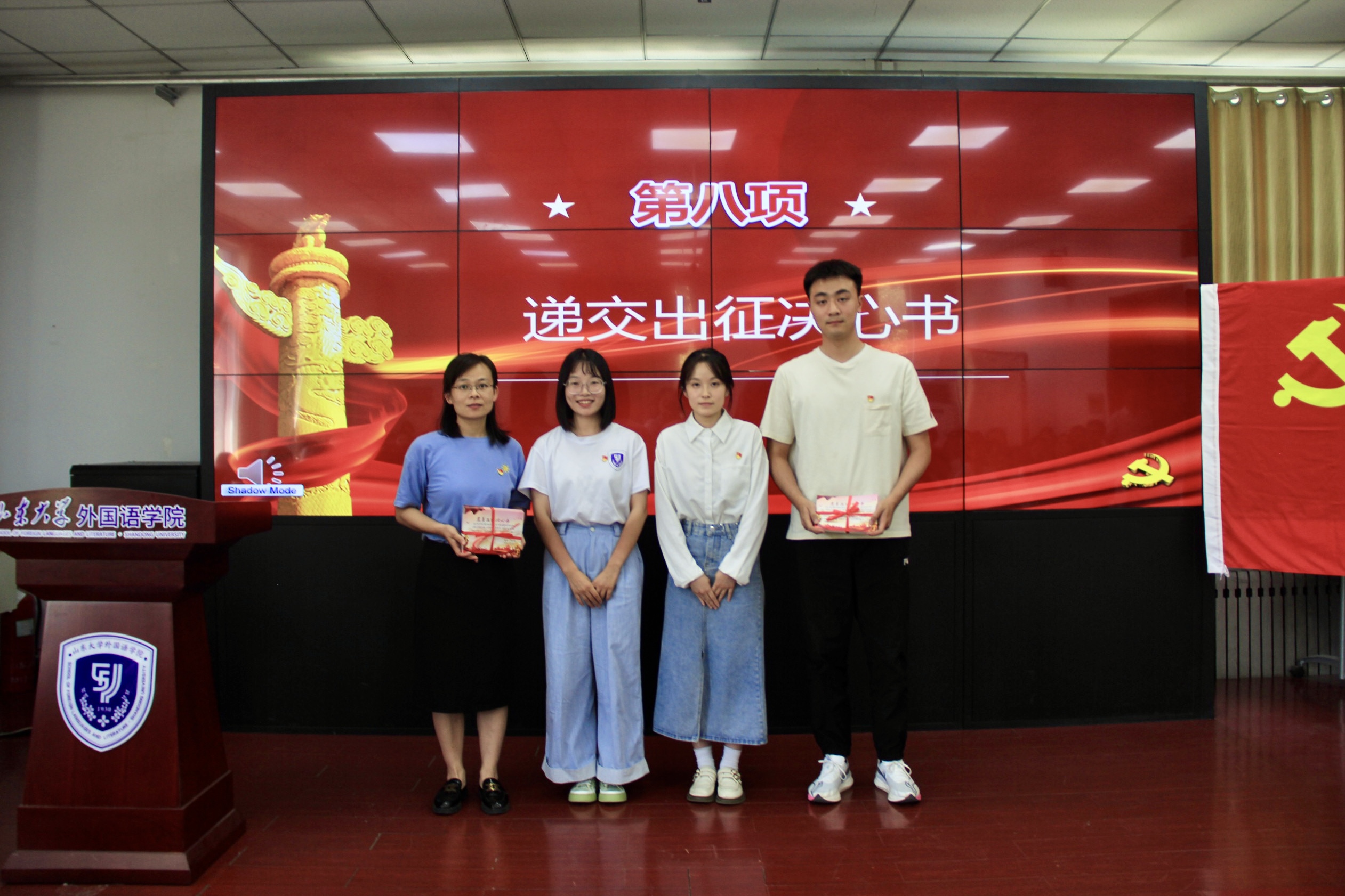 学院为党员同志们准备了党建书籍作为精神“食粮”,期望党员同志们能够夯实理论基础,筑牢思想“根基石”。毕业生党员以笔墨镌刻赤诚初心,党员代表们将承载着坚定理想信念的出征决心书递交给学院,彰显了他们对党和祖国、对学院的庄严承诺。