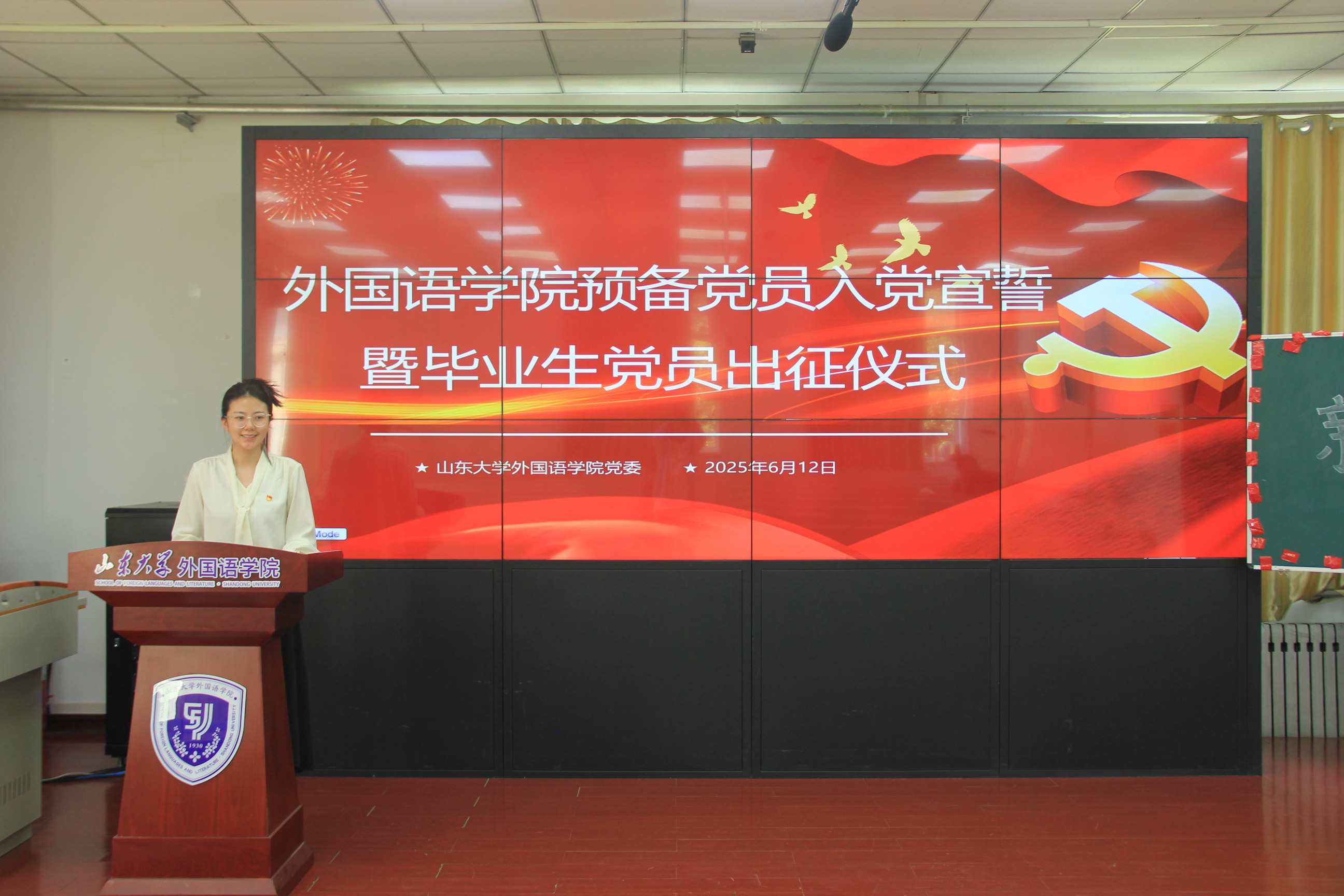 为将党员理想信念教育走深走实,强化党员身份意识与责任担当,6月12日,威廉希尔中文官方网站于洪家楼校区7号楼301教室举行预备党员入党宣誓暨毕业生党员出征仪式。威廉希尔中文官方网站党委书记刘华、党委副书记魏鲁鸿、党委委员德语系教授蒋颖和各年级辅导员出席活动,66名预备党员和全体毕业生党员参与活动,仪式由2021级本科生党支部书记陈诺主持。