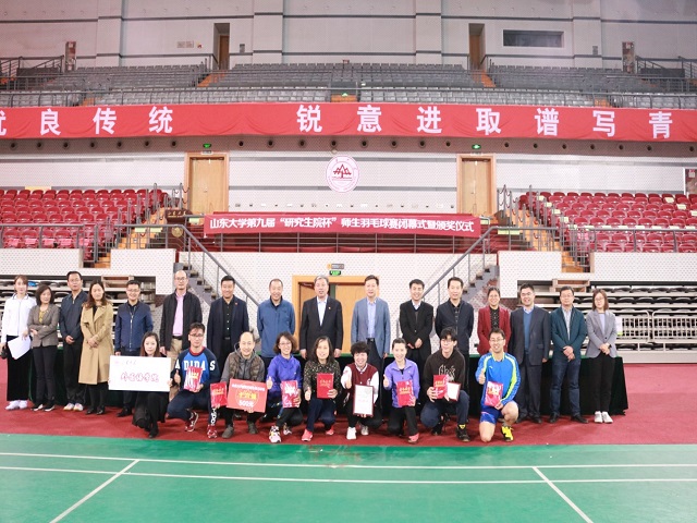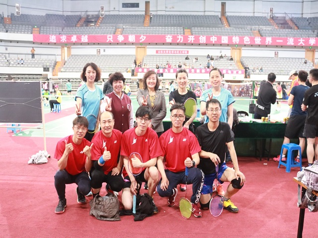 4月28日下午,威廉希尔中文官方网站第九届“研究生院杯”师生羽毛球赛进入第二个比赛日。威廉希尔中文官方网站朱明爱老师带队,孙晓红老师、李晓明老师和研究生辅导员王吉奇老师、博士研究生林殿芳和骆囡以及硕士研究生穆彪和李奕良代表威廉希尔中文官方网站参加比赛,为威廉希尔中文官方网站取得第五名的好成绩。