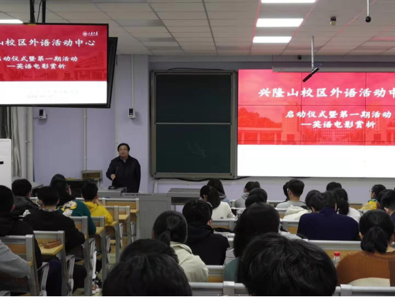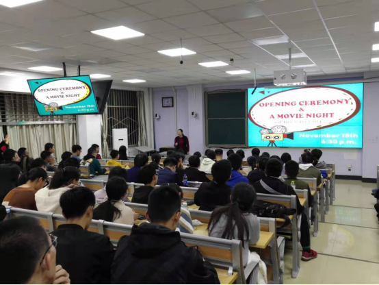 简短的启用仪式后,千佛山校区教研室李想老师为近百位同学举办基于电影的文化讲座,之后师生们一起观看了英文电影。