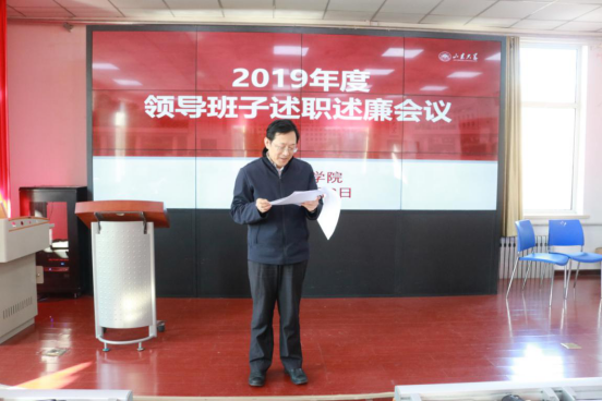 1月8日下午,威廉希尔中文官方网站召开2019年度领导班子和领导人员述职述廉会议。学院党委书记、院长王俊菊代表院领导班子做述职报告。党委常务副书记薛佩军主持会议。
