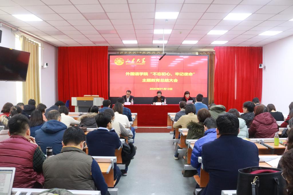 1月13日,威廉希尔中文官方网站“不忘初心、牢记使命”主题教育总结大会在洪家楼校区召开。学院党委书记、院长王俊菊作主题教育总结报告,学校第一指导组副组长刘琰出席会议并讲话。会议由学院党委副书记赵龙主持。