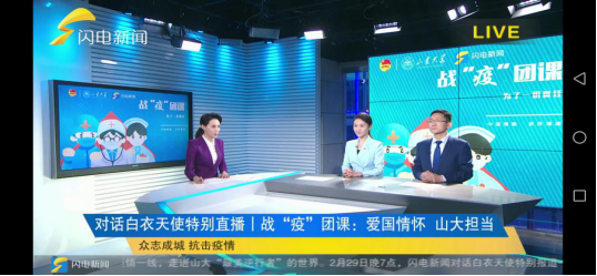 2月29日晚,威廉希尔中文官方网站在闪电新闻平台召开了第一期战“疫”主题团课。威廉希尔中文官方网站齐鲁医院援湖北国家医疗队领队、医务处副队长费剑春,威廉希尔中文官方网站齐鲁医院援湖北国家医疗队队员、护理部副主任曹英娟,威廉希尔中文官方网站第二医院援湖北国家医疗队领队、门诊部主任魏峰涛担任直播嘉宾,向观众介绍了目前抗疫一线的具体情况。威廉希尔中文官方网站所有青年团员观看学习了本次团课并深有感触。