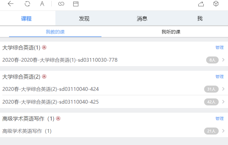 结合大学英语的教学特点,大家不仅仅采用非直播教学平台,如大外部自主学习平台、大学慕课平台、外研社的U校园等,还有更适合互动的直播平台,如腾讯会议和钉钉直播等。结合直播和非直播的两种教学模式,进行授课、答疑、测试等教学环节,保证了每一个教学环节的顺利进行。