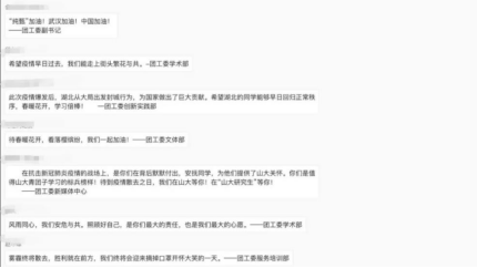 在鄂第七临时团支部组织学生参与抗疫主题征文、建立学习交流群等多个线上团日活动,并与校研究生团工委共同召开线上交流会,带领在鄂学生坚定信念,相互鼓励,共渡难关,传递必胜信心和人文关怀。