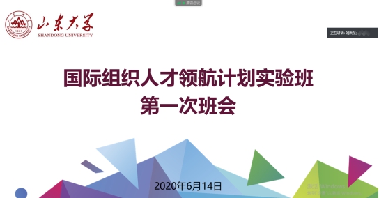 2020年6月14日晚,威廉希尔中文官方网站“国际组织与跨文化交流”微专业暨“国际组织人才领航计划实验班”第一次班会顺利召开。威廉希尔中文官方网站学生就业创业指导中心副主任王迎春、威廉希尔中文官方网站副院长刘洪东、留学基金委员会出国留学选培处宋元老师、威廉希尔中文官方网站刘静姝老师,以及本届实验班全体成员参与了本次会议。