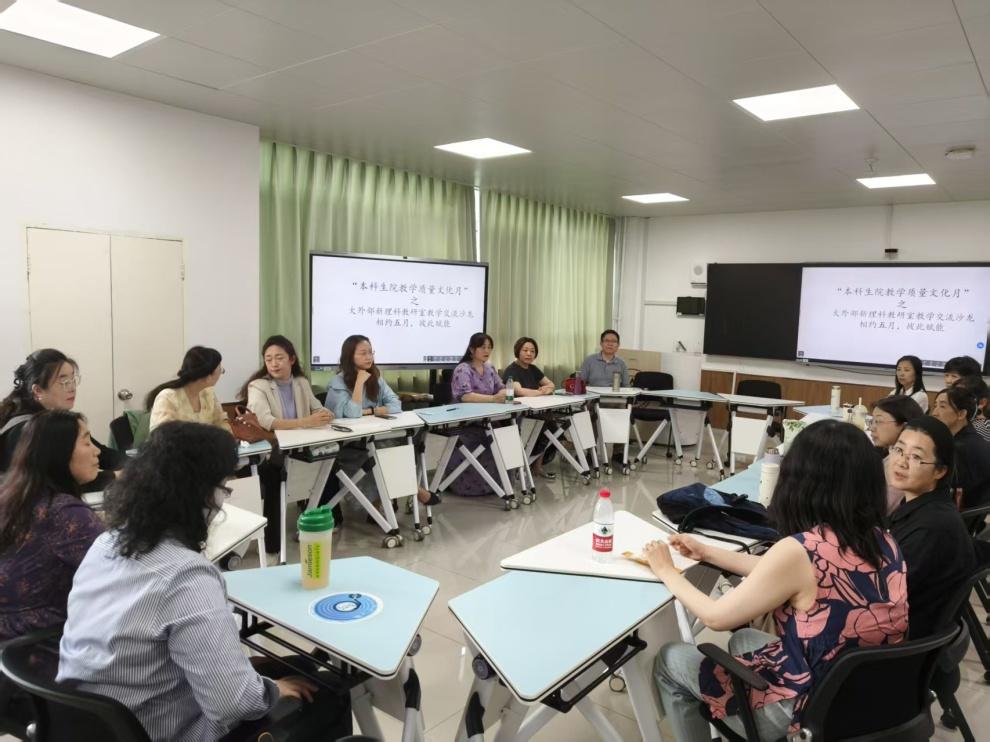5月15日下午,为贯彻落实本科生院教学质量文化月活动,外语学院大外部理科教研室在中心校区举办教学交流沙龙,全体教师参会。庄新红老师主持活动。