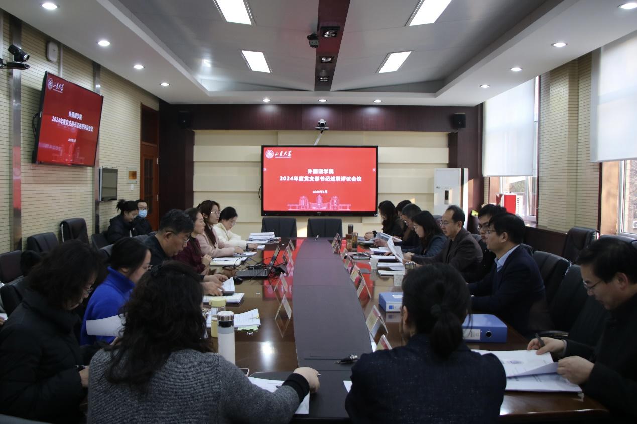 现场述职采取“一述一评”的方式进行。翻译学研究团队党支部、国别与区域研究团队党支部2个教工党支部书记,2022级本科生党支部、小语种专硕党支部、小语种学硕与国别区域硕士党支部3个学生党支部书记依次进行现场述职,其他党支部书记作书面述职。全院19个师生党支部的述职报告汇编成册,同时提交会议审阅。