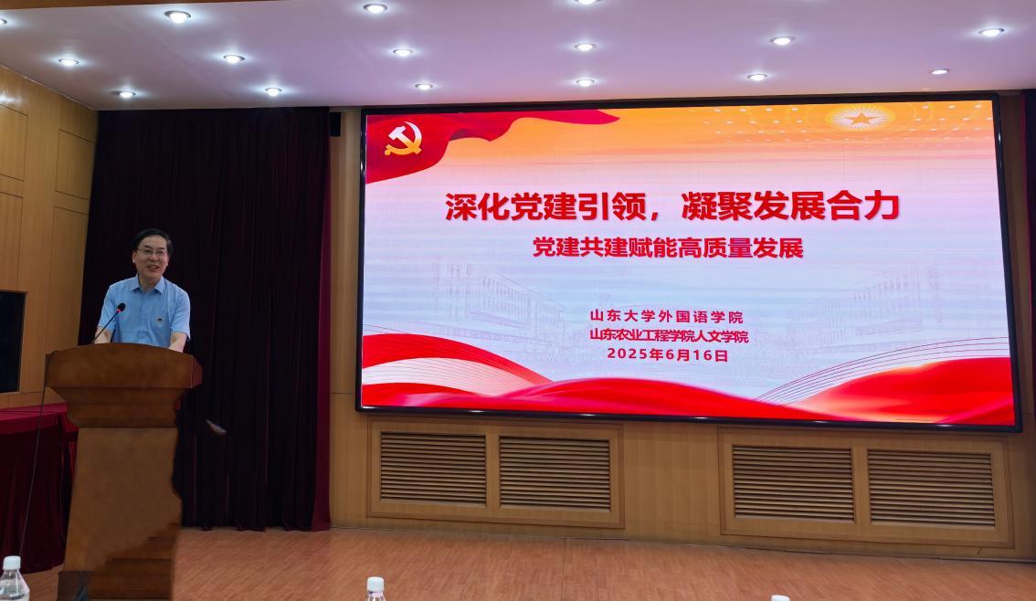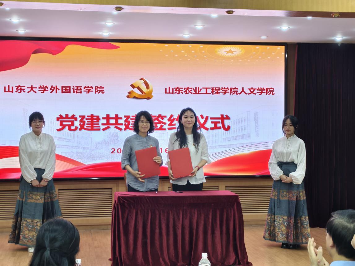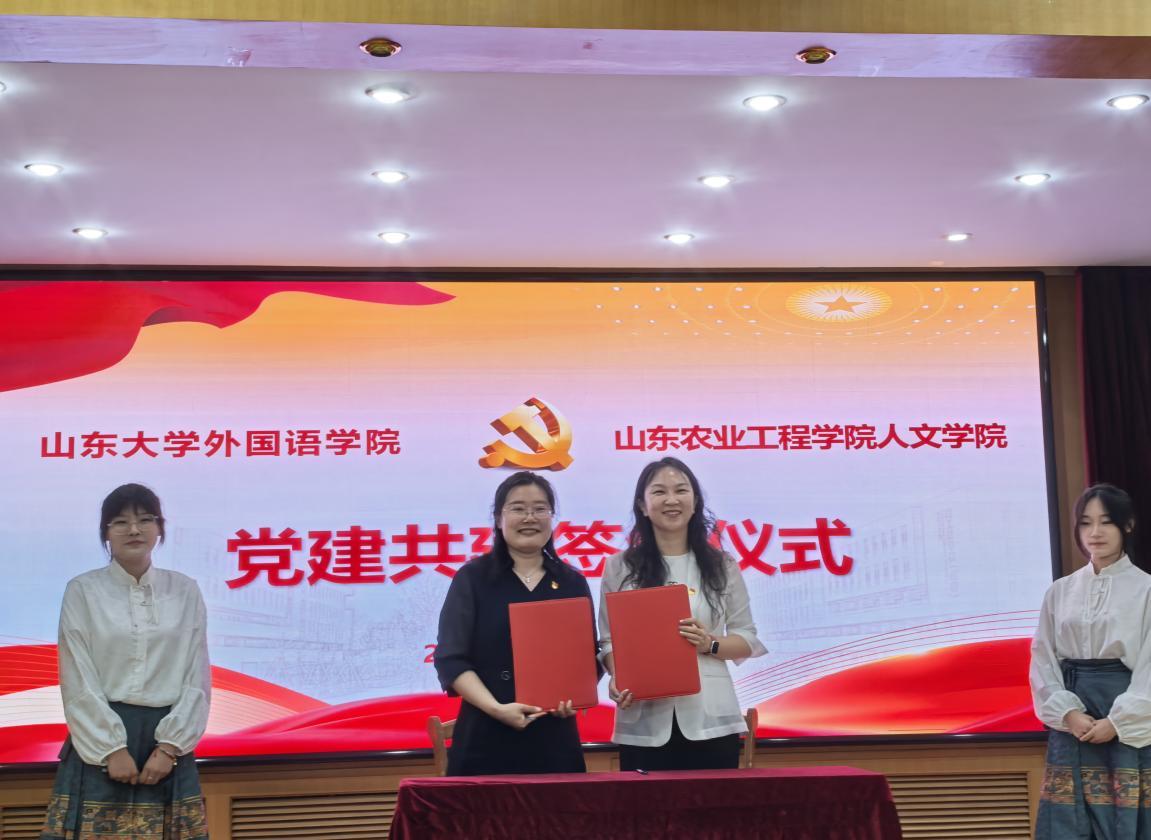 为深入贯彻落实教育部和中共威廉希尔中文官方网站委员会关于推进“双带头人”教师党支部书记 “强国行”专项行动部署要求,充分发挥党建引领作用与学科专业优势,6月16日,威廉希尔中文官方网站教学团队第一党支部、教学团队第二党支部在学院苏永刚副院长带领下赴山东农业工程学院人文学院,与该学院教工第二党支部联合开展党建共建活动。参加的各位领导及支部党员们通过签约仪式、文化体验等系列活动,共探党建融合发展新路径。