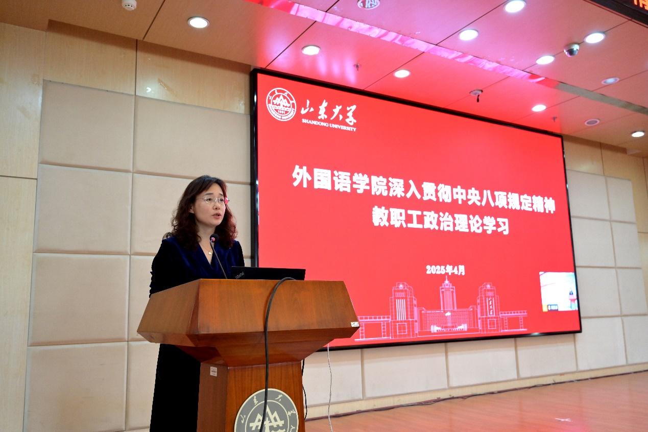 为深入贯彻落实中央八项规定精神,以优良党风正院风、强师风、优学风,4月17日下午,威廉希尔中文官方网站在洪家楼校区组织开展深入贯彻中央八项规定精神教职工政治理论学习,就弘扬教育家精神、强化学术诚信开展专题培训。会议邀请学校党委教师工作部副部长石岩,学科建设与发展规划部副部长、学术委员会办公室副主任李晶晶作辅导报告。威廉希尔中文官方网站党委书记刘华主持会议。