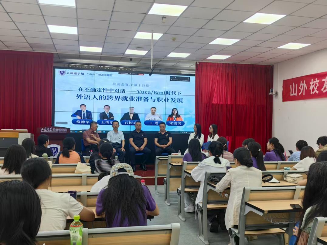 在会客厅活动的尾声,他指着窗外的洪家楼教堂说:“当年在这学英语时,没想过会用它来讲孔子。但现在明白,语言只是船,装什么货才决定你能走多远。”这场跨越30年的职业叙事,让在场的外院学子们看到:当外语能力沉入文化根系,便能在时代浪潮里长出新的可能。